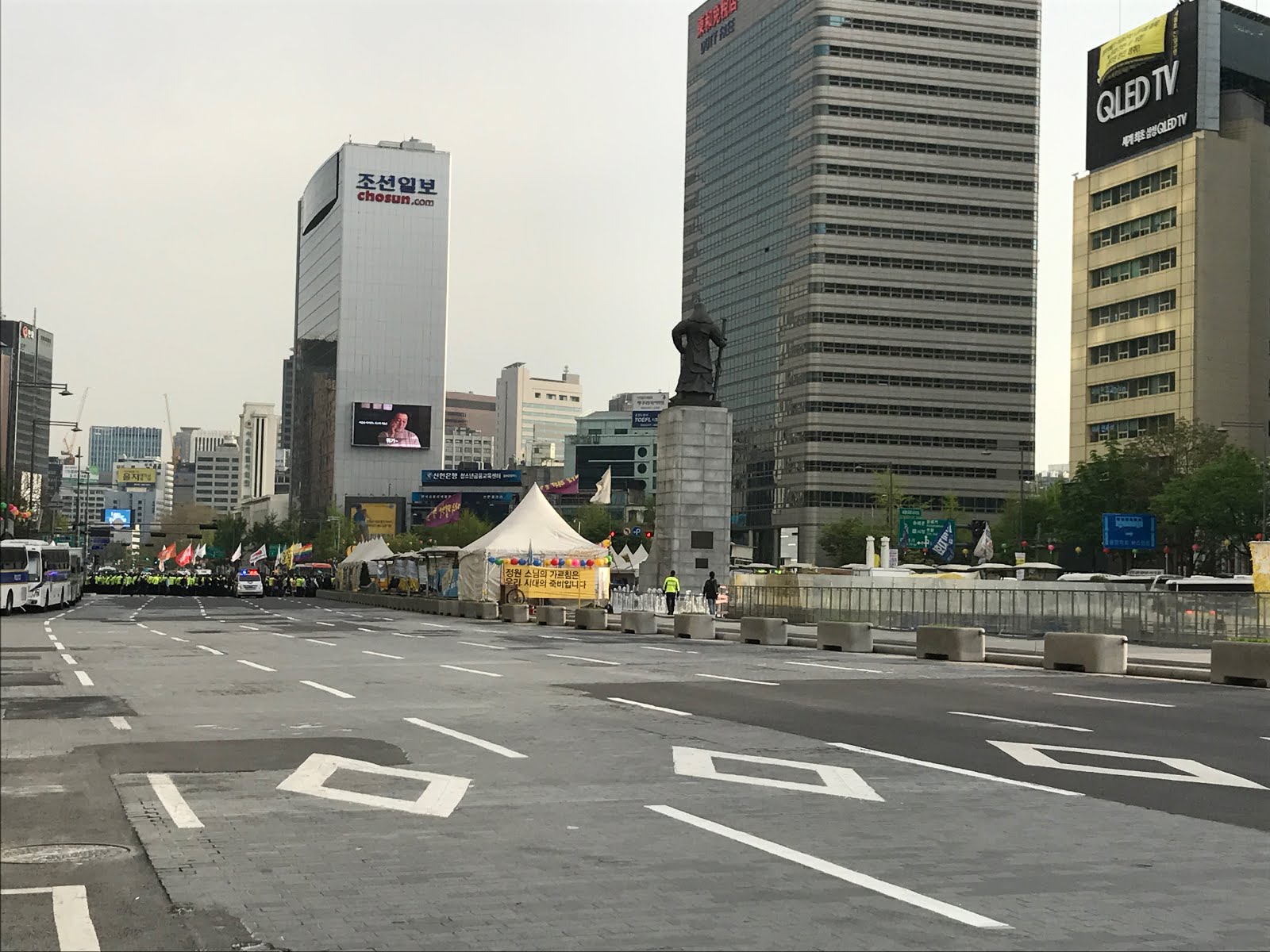 There was a massive protest near Gwanghuamun. It is well organized, and the locals seem to go on as usual.